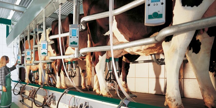 Hala udojowa typu „rybia ość” EuroClass 800 pozwala zaoszczędzić naprawdę dużo przestrzeni oraz łączy kompaktową konstrukcję z wydajnością i projektem przyjaznym dla zwierząt.