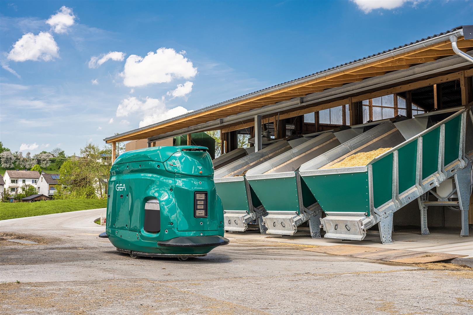 Autonomiczny robot paszowy waży, miesza i dystrybuuje do 2,2 m³ świeżej paszy TMR co godzinę dla maksymalnie 300 zwierząt w różnych grupach żywieniowych. Zapewnia idealne przygotowanie niestandardowych racji pokarmowych zgodnie z ustalonymi przez klienta cyklami żywieniowymi. Robot przejmuje również prace związane z popychaniem paszy między cyklami.